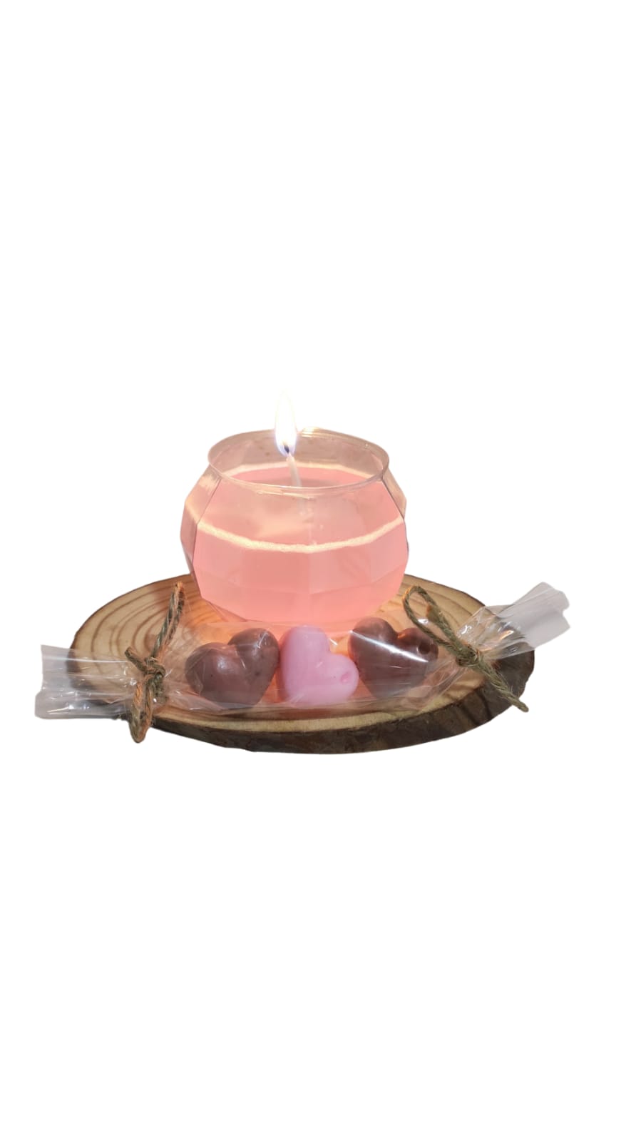 Vela decorativa aromática en su recipiente para conseguir un ambiente agradable y relajante en toda la estancia.
